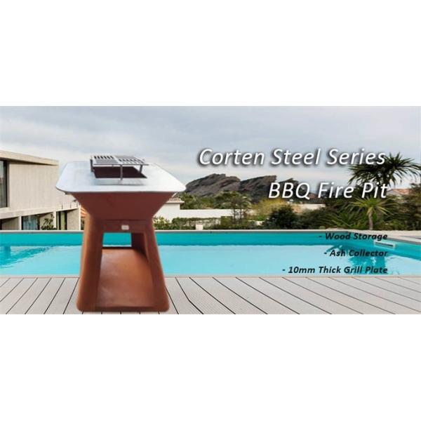Wood Burning Trapezoid Base Outdoor Cooking Base Corten Steel Fire Pit BBQ Grill Images |